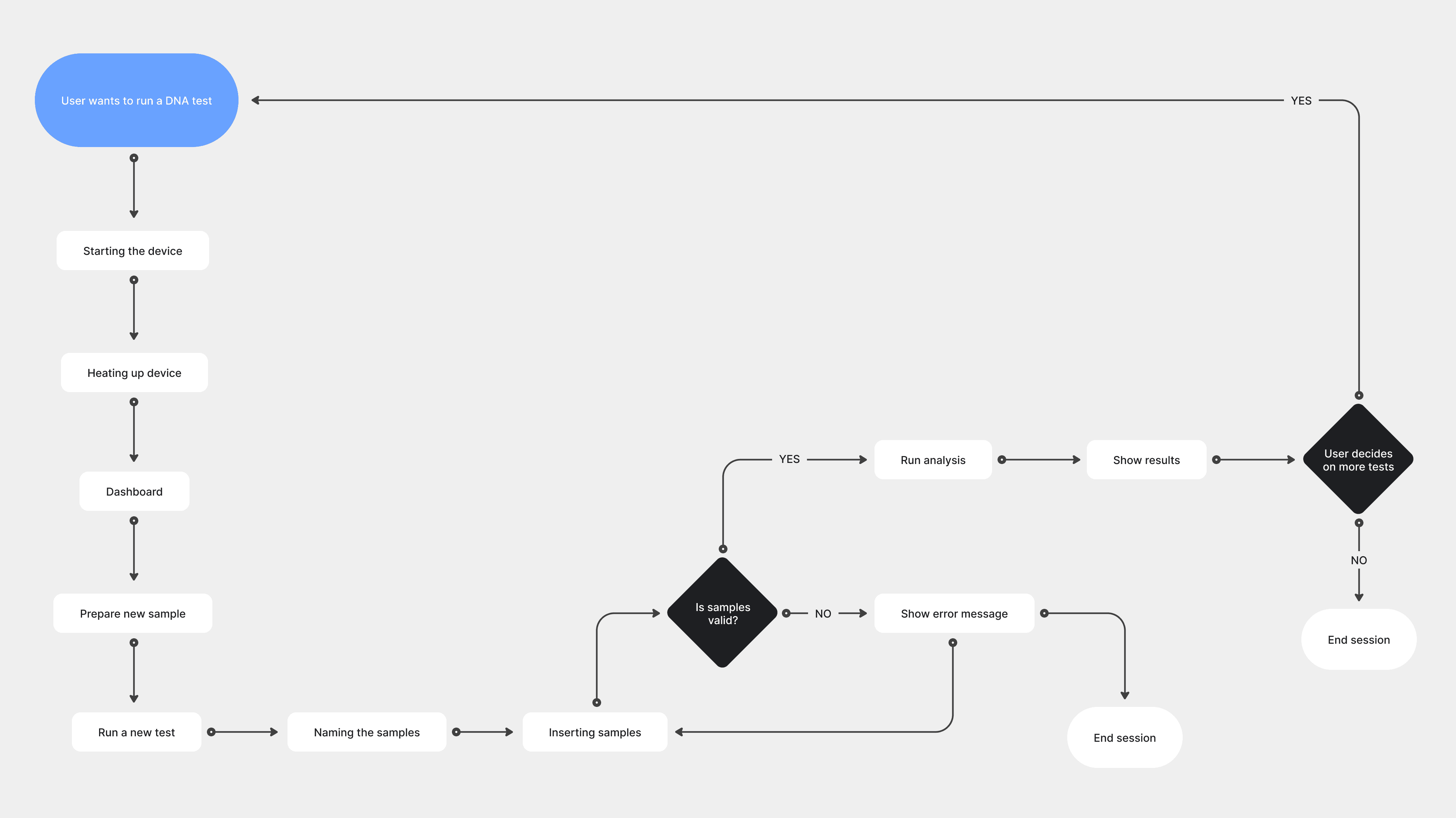 The user flow from start to finish
